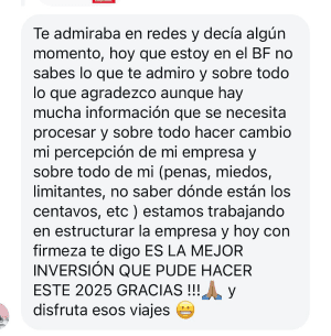 Es una semana entera trabajando directamente en tu negocio, conmigo y un equipo de más de 20 líderes que ya pasaron por donde tú estás hoy.